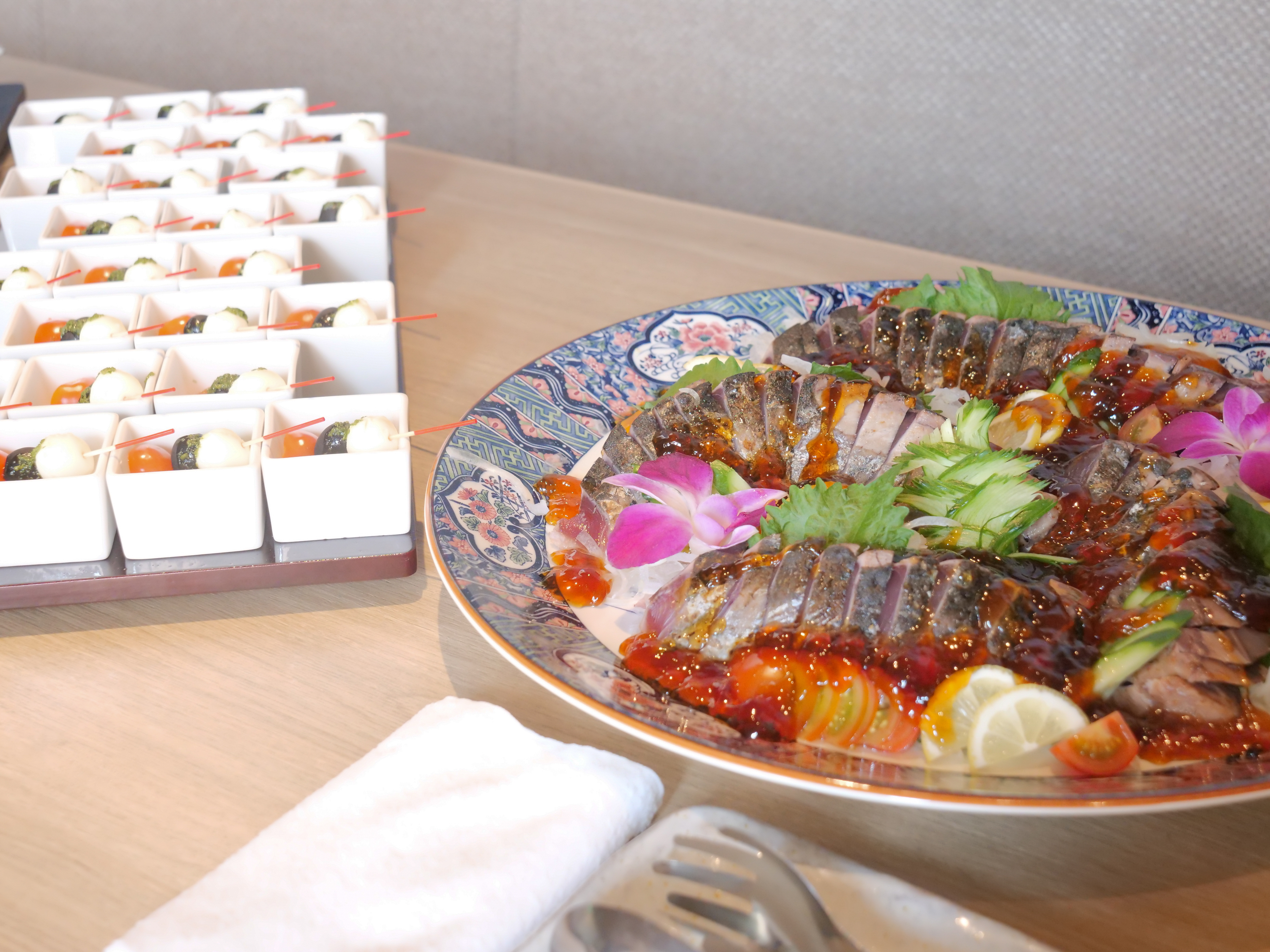 お料理は立食形式のビュッフェでした。お店の方が女性向けのメニューを多めにしてくださいました。